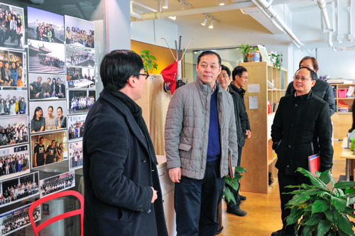杨书记首先听取了娄永琪院长所做的学院情况介绍和近期工作汇报,并关切地询问了与会老师们的教学科研情况。随后,杨书记一行在院领导的陪同下,实地考察了学院创意工场以及各实验室的建设情况,参观了学院学生的作品展,并详细了解了学院新空间的建设情况,以及学院下一步的工作规划。