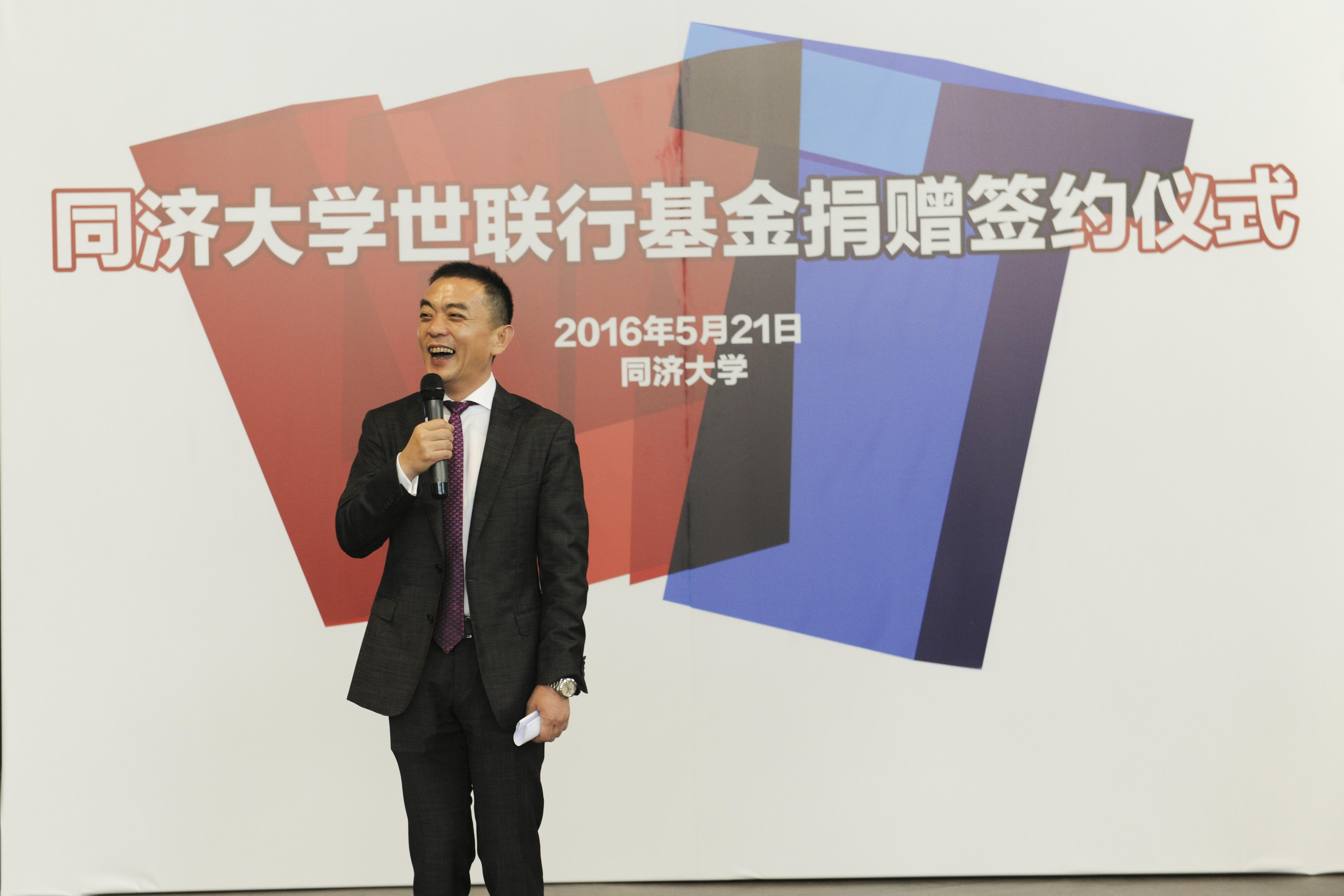 陈劲松在致辞中表示,自己是1981年从黑龙江哈尔滨来到同济大学学习建筑结构专业,1985年又考入管理工程系建筑管理专业研究生,从17岁到24岁,人生观、价值观形成以及探索世界的最重要阶段,是在同济大学度过的,这令他受益至今。为感谢母校给予他的滋养,他个人出资捐赠,以上市公司“世联行”的名义来设立基金。